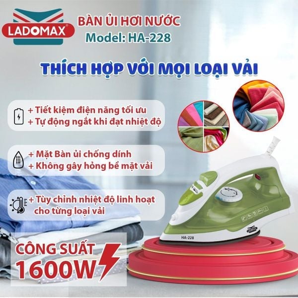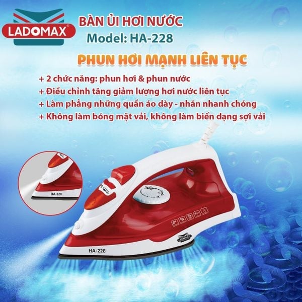 Bàn ủi hơi nước đôi Ladomax HA‑228 – Nhanh, mạnh, đa chức năng