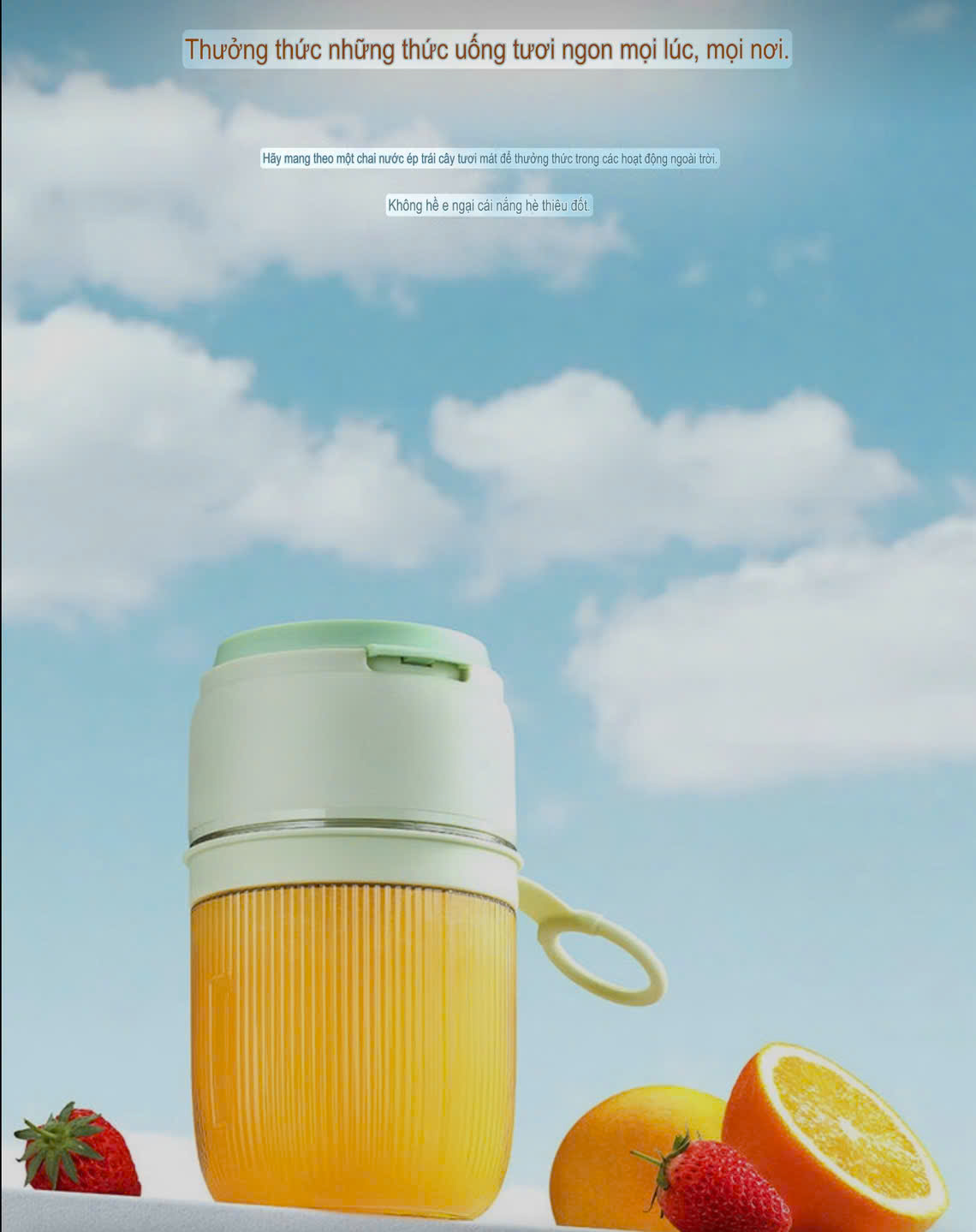 Thiết kế uống trực tiếp: Nhỏ gọn và nhẹ, bạn có thể ép và thưởng thức ngay tại cốc mà không cần sang chiết, cực kỳ tiện lợi khi mang đi làm, đi tập gym hoặc du lịch.