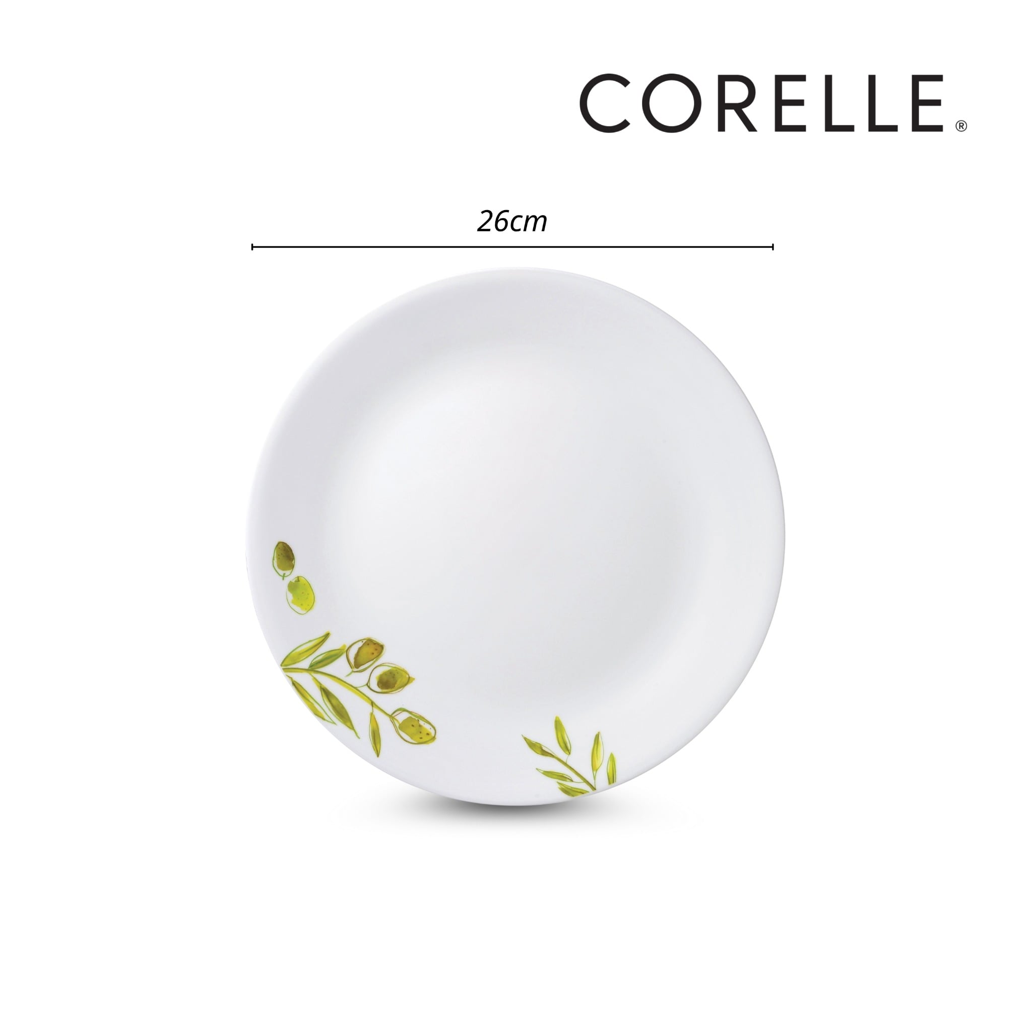 Dĩa Corelle Olive Garden 110-OG-LP thuộc bộ sưu tập Olive Garden, nổi bật với họa tiết cành ô-liu xanh mát lấy cảm hứng từ những vườn ô-liu Địa Trung Hải.