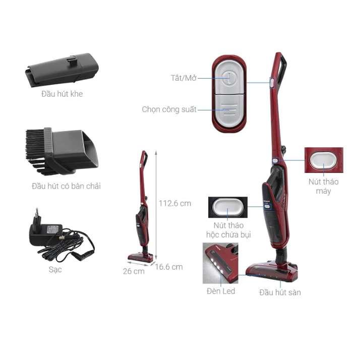 Phụ kiện: Chổi Turbo có đèn LED, bộ chuyển AC *4