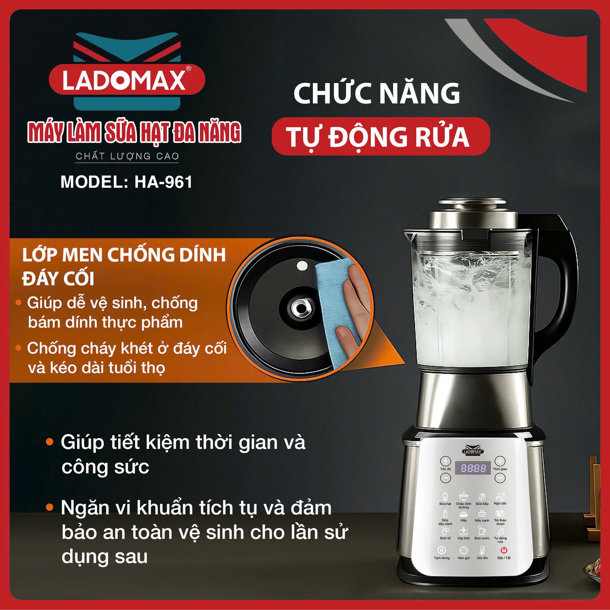 Nếu bạn cần một chiếc máy không chỉ làm sữa hạt mà còn có khả năng xay nhuyễn mịn mọi loại sinh tố, xay đá, xay khô và bổ sung tính năng hấp tiện lợi, LADOMAX HA-961 chính là sự đầu tư xứng đáng.