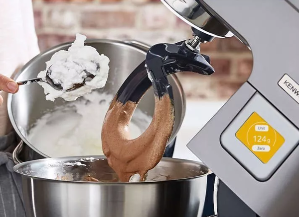 Cân điện tử tích hợp trên máy nhào bột Kenwood KWL90.004 Si giúp tiết kiệm thời gian và giảm bớt tình trạng lộn trong quá trình trộn bột làm bánh, nhờ tính năng trừ bì - On Zero cho phép bạn cân đếm chính xác khối lượng của từng thành phần nguyên liệu khi cho vào bát trộn. Đây là tính năng đặc biệt hữu ích, khi trong quá trình làm bánh, bạn không những phải thêm từng thành phần nguyên liệu vào hỗn hợp đúng thời điểm, mà còn đúng chính xác khối lượng của công thức bánh.