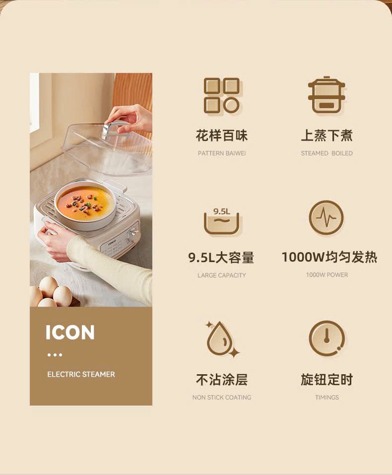 Công suất 1000W mạnh mẽ: Giúp nước sôi nhanh và tạo luồng hơi nước mạnh mẽ, làm chín thực phẩm đều và giữ trọn dưỡng chất.